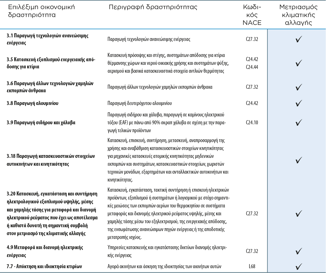 Η Viohalco έχει αξιολογήσει τις επιχειρηματικές της δραστηριότητες βάσει των κριτηρίων επιλεξιμότητας της Ταξινομίας της ΕΕ. Όσον αφορά στις δραστηριότητες της Viohalco, έχει καθοριστεί ότι έχει συνάφεια μόνο ο περιβαλλοντικός στόχος του μετριασμού της κλιματικής αλλαγής, επομένως όλες οι αξιολογήσεις έχουν βασιστεί στα σχετικά κριτήρια που περιλαμβάνονται στον κανονισμό.